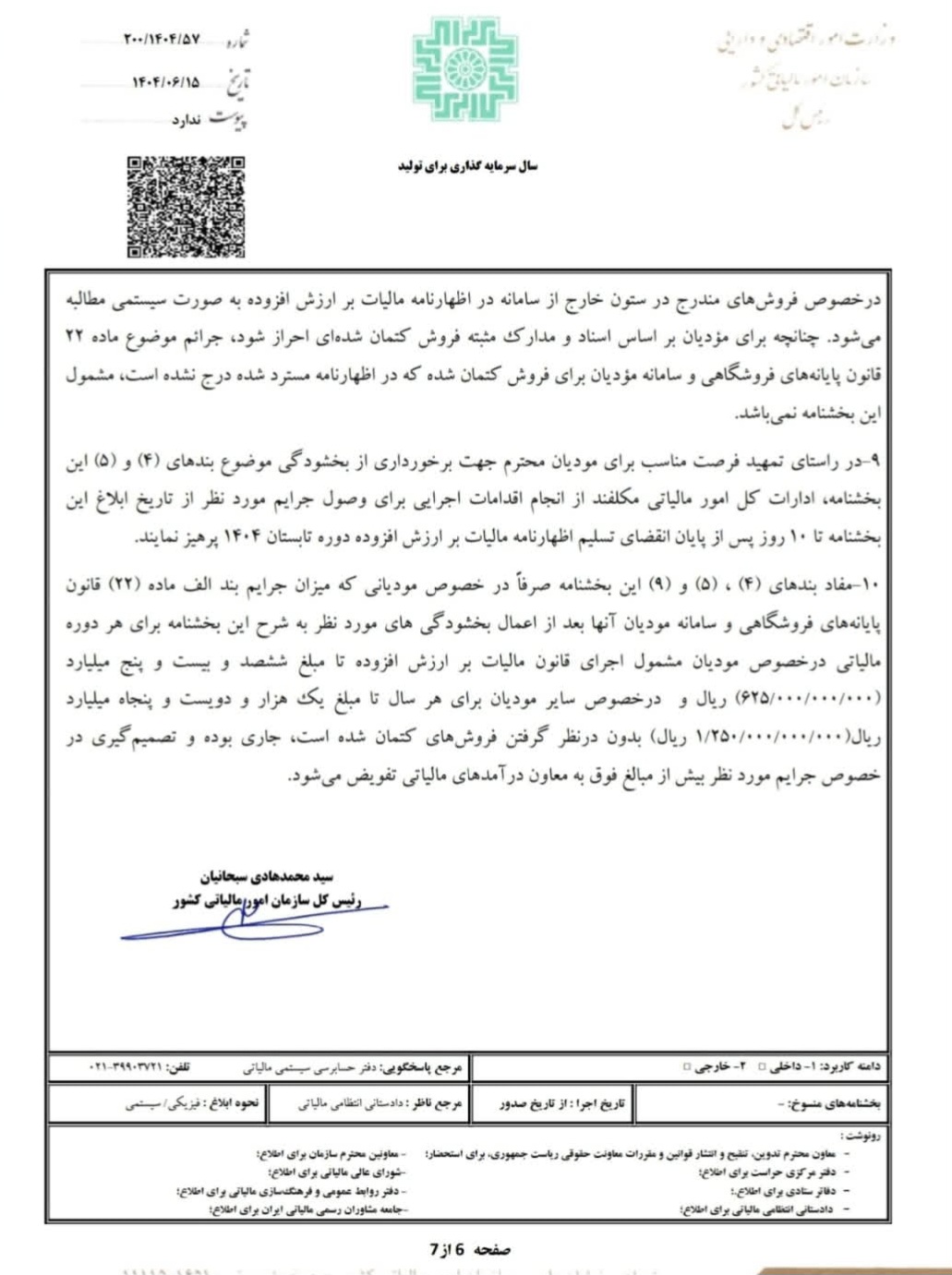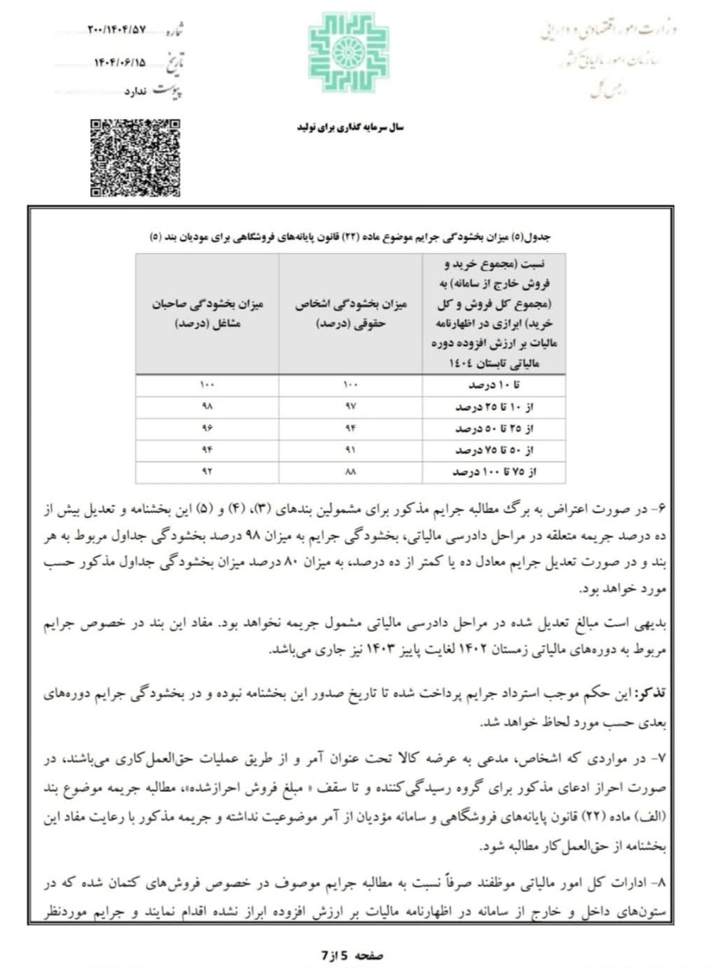 بخشنامه نحوه بخشودگی جرایم ماده 22 قانون پایانههای فروشگاهی و سامانه مودیان دورههای زمستان 1402 تا بهار 1404 و مالیات عملکرد سال 1402